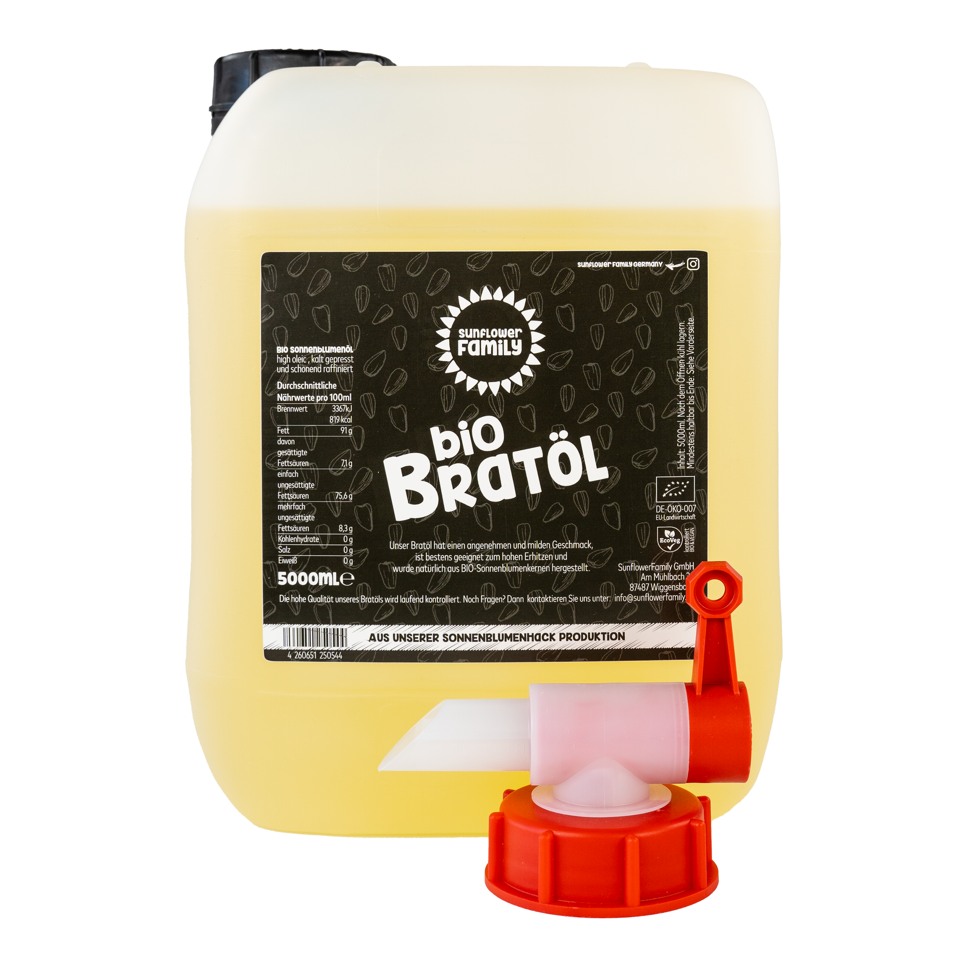 Unser Sonnenblumenöl eignet sich ideal zum scharfen Anbraten, Frittieren oder Grillen, da es auch bei längeren Erhitzungen über 200 °C stabil bleibt. Ob für Pfanne, Backofen oder Gastroeinsatz – auf dieses Öl ist Verlass.