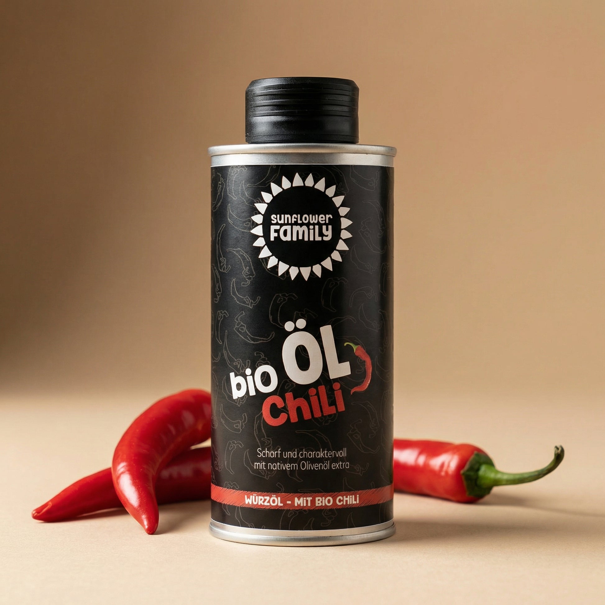 Das Bio-Chiliöl von sunflowerFamily ist aromatisch und angenehm scharf – ideal für alle, die Chili lieben und Wert auf klare Zutaten legen.